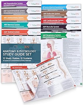 Our set of 10 Anatomy and Physiology study guides features 12 essential body system cheat sheets, including nervous, musculoskeletal, and lymphatic; Perfect for a nurse, EMT, or med student, these guides are indispensable academic tools for an exam, course, or clinical practice