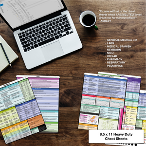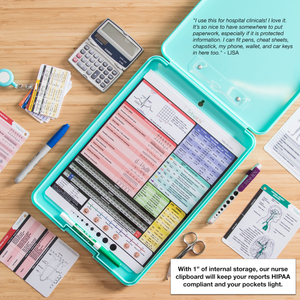 What makes the ClinicalGuru Set so unique? Not only do you get our Nursing Clipboard, but you'll also receive our indestructible 8.5x11 cheat sheet set.