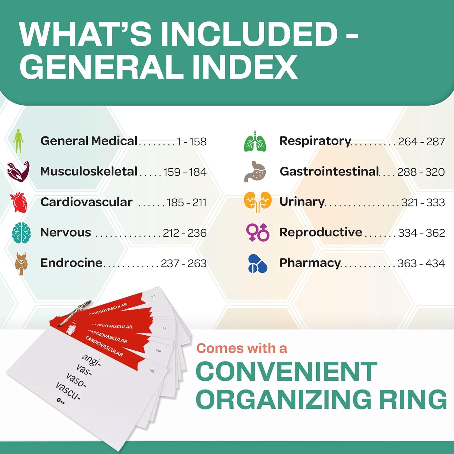 COMPREHENSIVE LEARNING TOOL: 500 double-sided flash cards designed for nursing and medical students. These color-coded cards make it easier to master medical terminology, pharmacology, med-surg, and more.